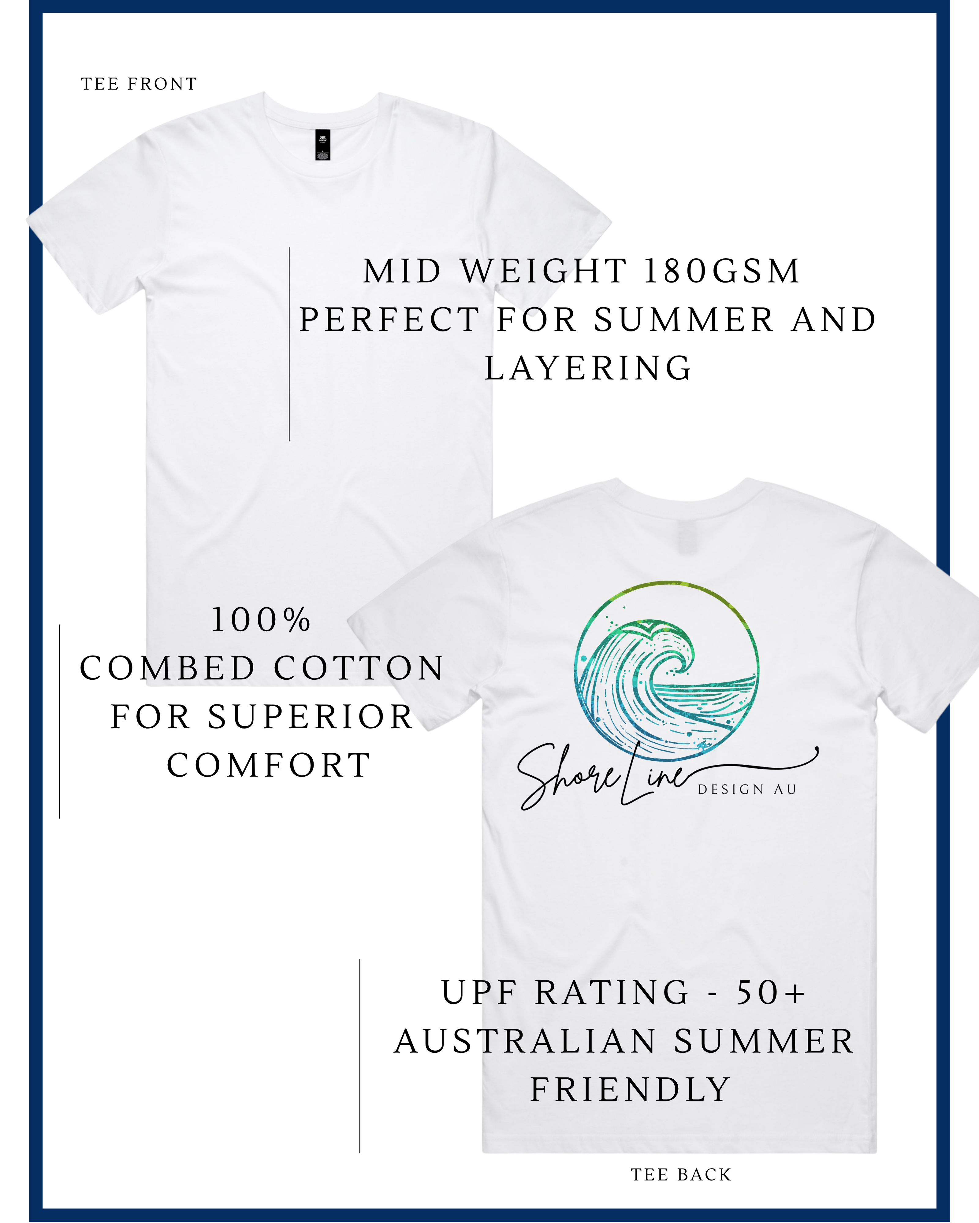 At Shoreline We're about less is more. Think Capsule Wardrobe but for tees. We look after the basics - good quality, comfortable tees in neutral colours that will match just about anything. We make sure the tees are sourced ethically and printed locally here in Australia. Then we elevate our tees with beautiful, purpose made designs to produce something special. Shoreline tees are not just another tee...they are a journey of collaboration through Australian creators.